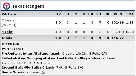 In a pitching matchup that featured Colby Lewis and Phil Hughes, only one would do well. And that was Lewis. The pitcher, who was added to the roster earlier this year after spending two years in Japan, threw a spectacular game. Lewis pitched eight strong innings, surrendering three hits and one earned run. He also walked three batters and struck out seven. Hughes, on the other hand, was quite the opposite. The young pitcher managed to only pitch 4.2 innings, giving up four earned runs and four hits. He also walked four, struck out three, and had a crazy wild pitch.